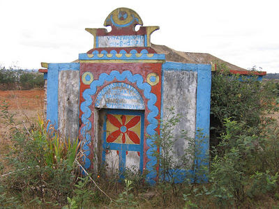 Au milieu se détache généralement une maisonnette sacrée ornée de petits miroirs.
